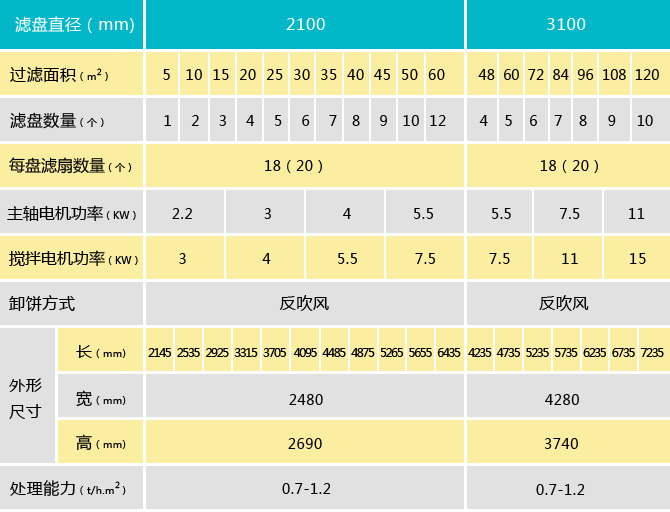 (8)每盤由20片扇形板組成,加強(qiáng)了過濾過程控制,成餅厚度均勻。